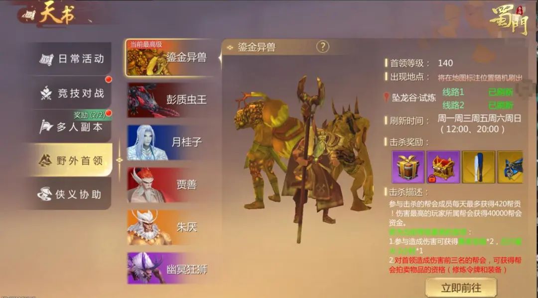 新的野外BOSS鎏金异兽将会出现在此地,挑战鎏金异兽就有机会获得全新的高等级装备。除此之外,坠龙谷·试炼中还有很多意想不到的玩法将在后续揭晓!