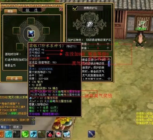 6、+9是重点,能不能上10就先看这步了,本人也曾经放4个钛晶点过N次,但是爆的太多了,个人建议至少4个+7的,不要在乎那点钱,爆了从头在来哭死你!4个+7有42%的成功几率,然后等机会,先准备一个垃圾+7的装备,到晚上4-5点钟,30分钟都看不到别人砸装备,认为不会有人偷的时候,直接+7的垃圾一个大光芒去裸奔,爆了之后,速度把+9的丢进去,放满+7的4件幸运物品,点!恭喜你+9了!如果有人偷,没办法在循环这个流程!也有人喜欢朋友给自己垫手,我也试过,成功过,也失败过,为了我增加+10,朋友把自己不玩号的+8J7阶镰刀+9去裸奔,我然后去+10放了2个+7垃圾和2个+8的幸运去点,结果暗爆!当时晕死,2天没上线!J青凝+10啊,!