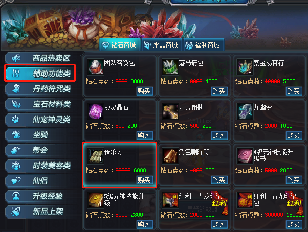 3.接取任务之后在NPC【传承使者】处提交一个【传承令】完成任务即可直升至78级,同时获得一个灵狐传承包,传承令可以在商城中辅助功能类中进行查找购买。