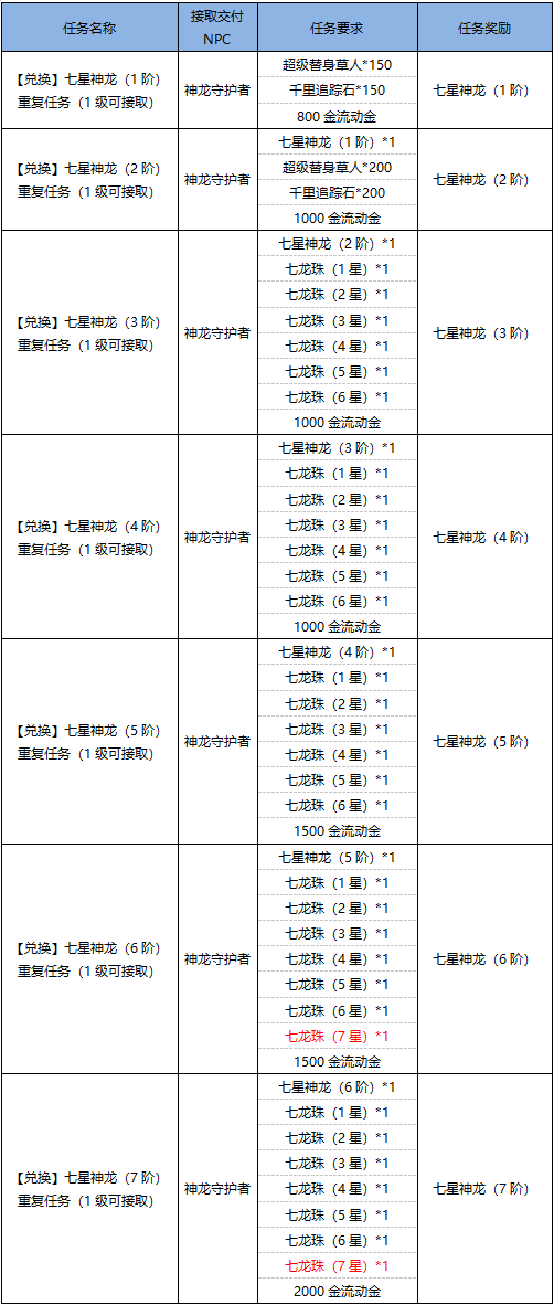 (1)当完成任务进行升阶时,默认优先升级背包内装备后绑定的七星神龙,兑换获得的是装备后绑定的七星神龙;