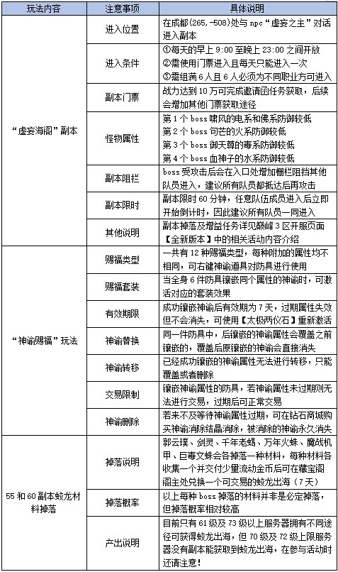 注:由于70级-72级上限的服务器没有副本能出现“隐匿的盗宝贼”,因此将给荣耀7区至26区临时开启55和60副本的蛟龙材料掉落。