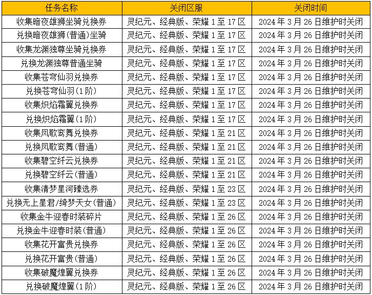 蜀门私服部分活动任务关闭说明 shumen 2024-01-18 18:29:41 默认 摘要: 蜀门私服部分活动任务关闭说明 自2024年3月26日维护后,以下所列任务将进行关闭,请有需要的玩家抓紧时间完成: 一、任务列表: 二、任务说明: 1、以上各区服所列出的任务将统一在2024年3月26日维护时关闭,关闭后将无法再接取和交付这些任务,若有需要请在关闭前完成; 2、只有列出的区服才会关闭以上任务,未列出的区服或者还未开放这些任务的区服暂时不会关闭。 标签: 蜀门私服 蜀门sf 版权声明:本站内容由互联网用户自发贡献,该文观点仅代表作者本人。本站仅提供信息存储空间服务,不拥有所有权,不承担相关法律责任。如发现本站有涉嫌抄袭侵权/违法违规的内容, 请发送邮件举报,一经查实,本站将立刻删除。 分享到: 赞() 上一篇 蜀门防骗指南(11月13日更新) 下一篇 蜀门sf礼盒春色满园 蜀门防骗指南(11月13日更新) 上一篇 蜀门sf礼盒春色满园 下一篇 相关推荐 蜀门私服 蜀门sf 蜀门703客户端:开启你的修仙之旅 2025-03-24 蜀门SF神龙状态:探索神秘的神龙之力 2025-03-24 蜀门峨眉七星装备:传承千年的江湖传 2025-03-24 蜀门道具商城:打造极致游戏体验 2025-03-24 留言与评论(共有 0 条评论) 验证码: