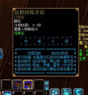 蜀门远程回收功能不仅便捷,而且收益可观。系统会根据市场行情和装备稀有度,给出合理的回收价格。玩家可以通过回收闲置装备和道具,轻松获得大量金币。这对于那些在游戏中投入大量时间和精力的玩家来说,无疑是一个巨大的福音。