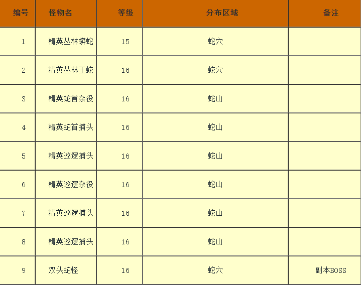 怪物:蛇首杂役,蛇首捕头,蛇匪头目
