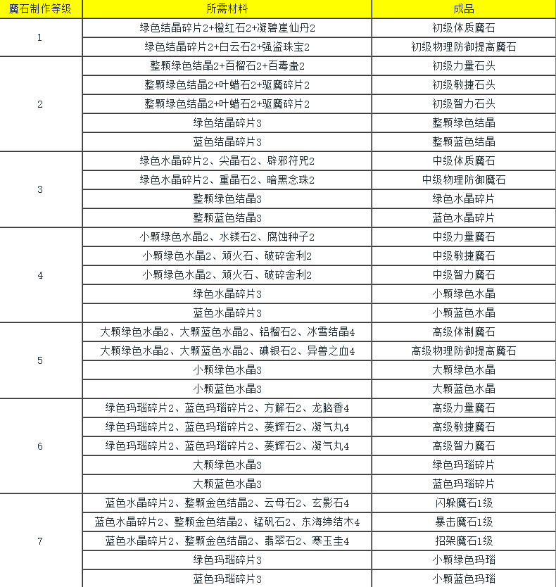 提升装备的能力,力量,敏捷,智力,体质等基础属性,高级制作技能可以制作出提升其他能力的魔石。