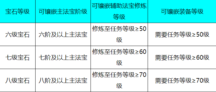 非金非玉,闪耀着独特光芒的宝石,镶嵌后增加人物全属性攻击,只能镶嵌在主法宝、辅助法宝、护手、护腕、戒指上。