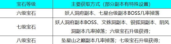 每个种类,每个等级的下品宝石,都可以通过击杀副本怪物获取:
