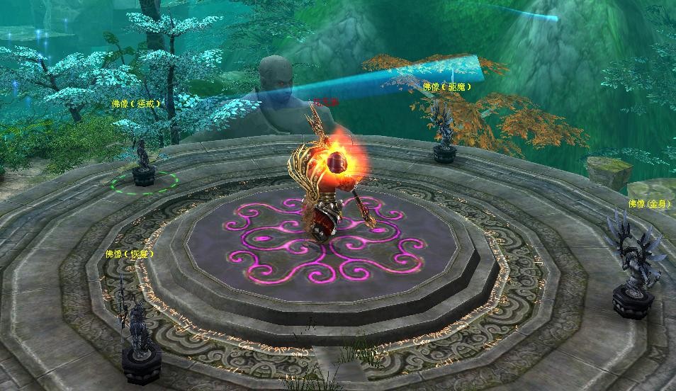 佛像(驱魔):为BOSS提供BUFF神助驱魔,吸收大部分魔法伤害。被击倒后,给角色添加一个DEBUFF天罚破魔,魔法攻击降低30%,持续10分钟。