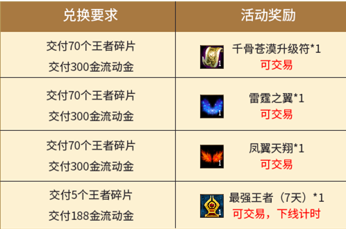 ②王者碎片暂无其他用途,仅用于本次活动兑换各类道具使用;