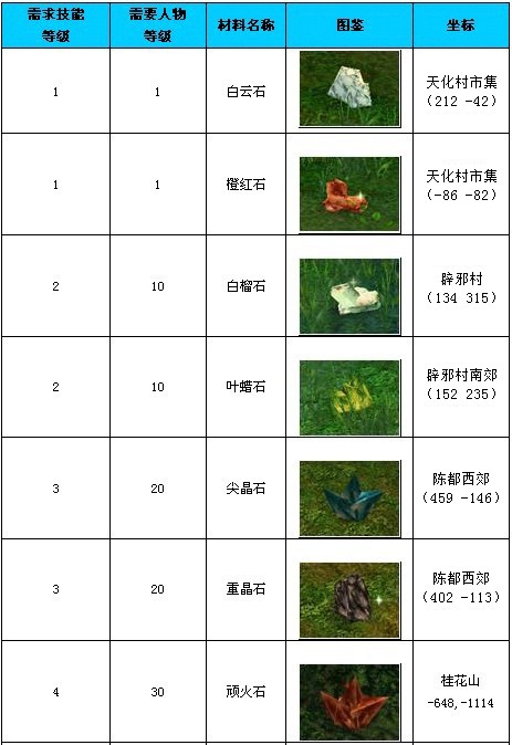 玩家可以各大城镇铁匠处学习到采集晶石技能