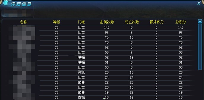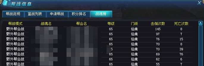 击倒排名可按照帮会进行详细查询