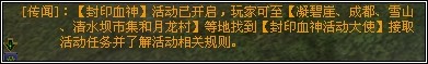2.玩家可在成都城【385.109】处及其他主要城镇找到NPC醉道人【封印血神活动大使】,并与其对话承接任务。