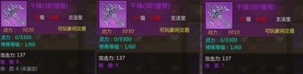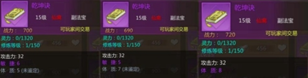 副法宝双属性分为了两个版本,一个是高智力,一个人的建议是都尽量选择高智力低体质的。说是低体质,实际上这类双属性的副法宝和体质和智力的数值差不太多,是比较平衡的。