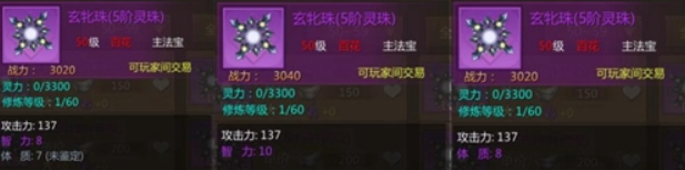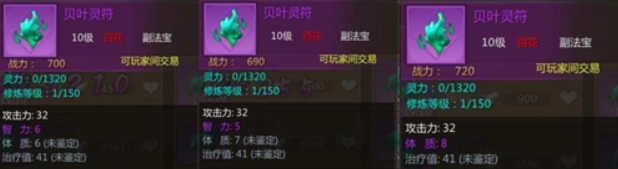 副法宝同理,双属性好于单属性。大家要注意,双属性中还分为高智力和低智力两个版本,想要辅助型的百花,高体质会比低体质的更适合,而高智力更适合想要生纯输出流的百花,大家可以按自己的需求选择。